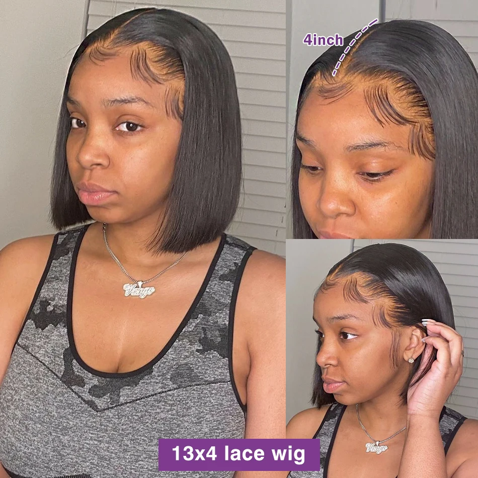 Прямые парики из человеческих волос с фронтальным кружевом и Бобом, бразильские волосы Remy 13x6, прозрачные, прямые, 150%, короткие, 4x4, парик для женщин