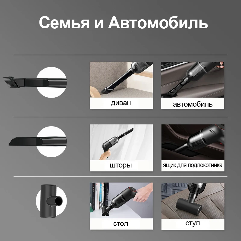 Беспроводной автомобильный пылесос 8000 ПА 120 Вт, Ручной беспровод...