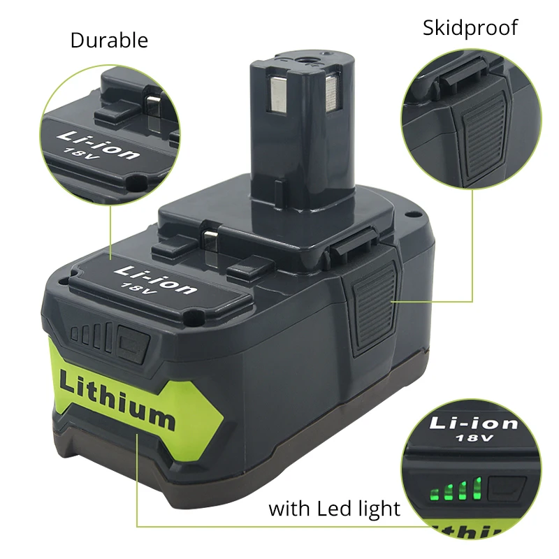 Замена оригинальных моделей батарей:BPL-1815, BPL-1820G, BPL18151, BPL1820, P102, P103 P104, P105, P106, P107, P108, P109 Совместимые модели: Примечание: Не работайте с "Ryobi P261 18V ONE + 3-Speed 1/2 in. Беспроводной ударный ключ" Для RYOBI ONE + 18 Вольт Аккумуляторная дрель Мощность инструментBID-1801M, BID-180L, BID1821, BIW180, CAD-180L, CAG-180M, CAP-1801M, CCC-1801M, CCC-180L,CCD-1801, CCG-1801M, CCG-180L, CCS-1801/DM, CCS-1801/LM, CCS-1801D, CCS-1801LM, CCW-180L, CDA-18021B, CDA1802, CDA18021B, CDA18022B, CDA1802M, CDC-181M,CDI-1802, CDI-1802M, CDI-1803, CDI-1803M, CID-1802M, CID-1803L, CID-1803M, CID-182L, CID-183L, CFA-180M, CFP-180FM, CFP-180S, CFP-180SM, CHD-1801M, CHI-1802M, CHP-1802M, CHV-180L, CHV-18WDM, CJS-180L, CJS-180LM, CJSP-1801QEOM, CJSP-180QEO, OBL-1801, OCS-1840, OGS-1820, OHT-1850, OLT-1830, OPS-1820, ORS-1801, OWD-1801M, P200, P2000, P2002, P201, P203, P204, P206, P2060, P208B, P210, P2100, P2102, P2105, P211, P220, P221, P230, P234G, P236, P240, P2400, P241, P246, P250, P2500, P2600, P2603, P271, P300, p301, P310, P3200, P3300, P3310, P340, P400, P410, P420, P430, P500, P501, P506, P510, P514, P520, P521, P522, P530, P540, P570, P600, P610, P631K, P650, P700, P701G, P703, P704, P710, p711, P715, P716, P730, P731, P740, P741, P780, P813, P835