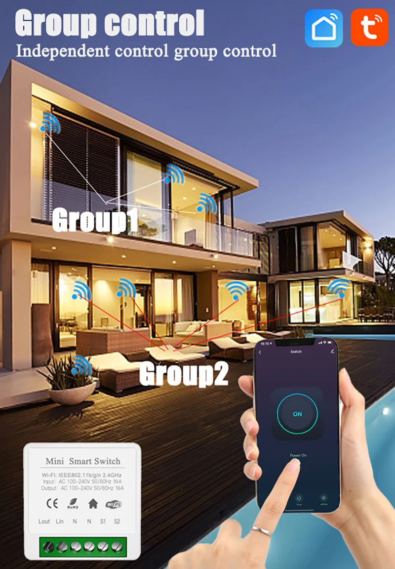 Мини-выключатель Tuya с Wi-Fi, 10 А, поддержка 2-стороннего управления, для автоматизации умного дома, модуль выключателя света для Alexa Google Home Smart Life