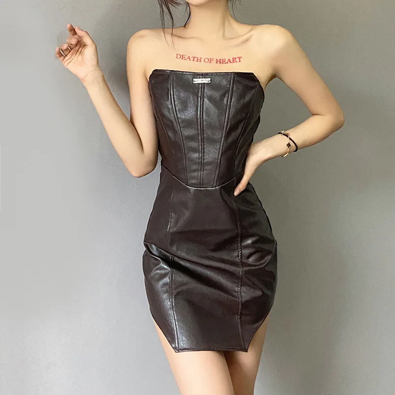 Machedaосеннее Новое байкерское Платье из искусственной кожи в комп...
