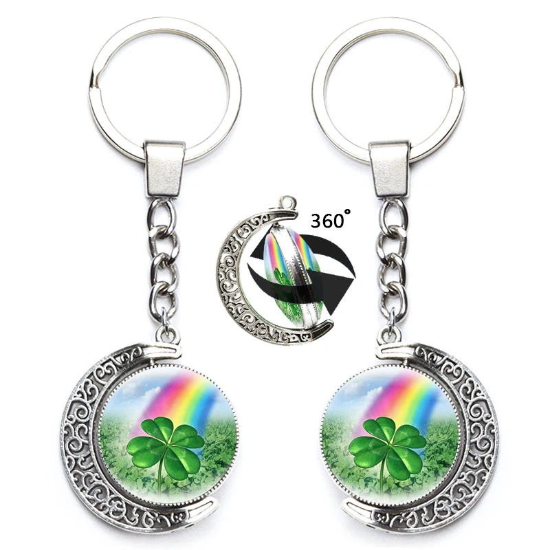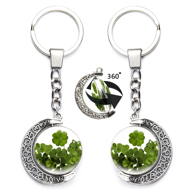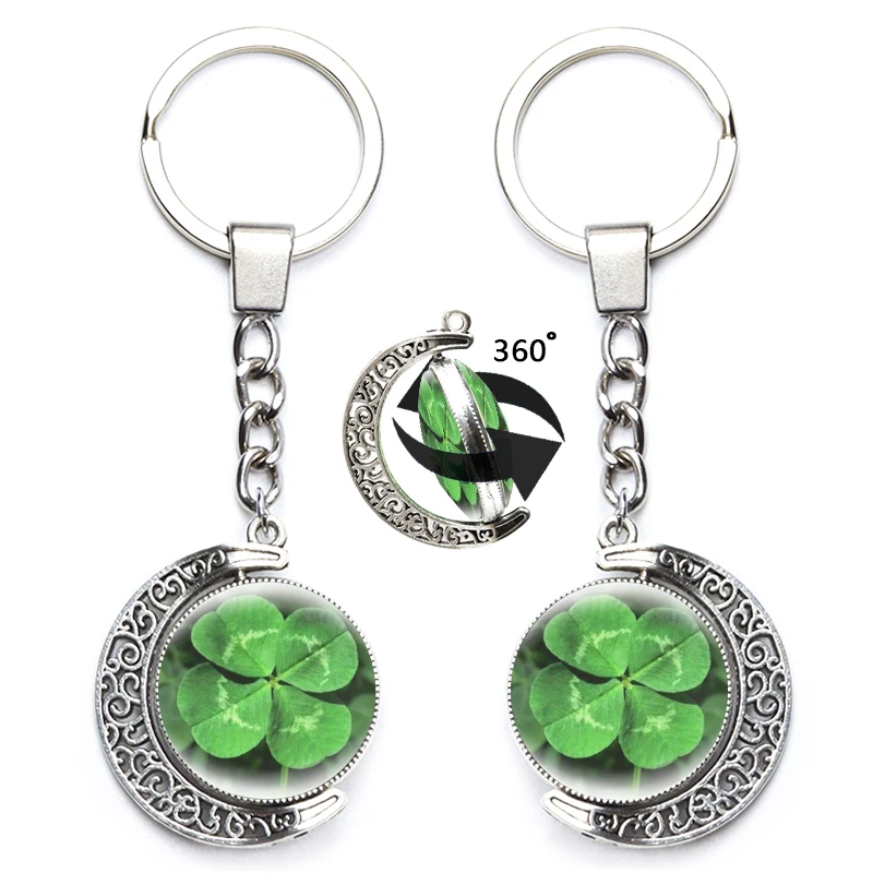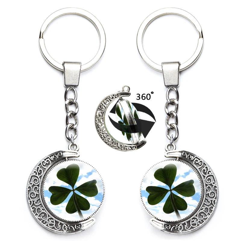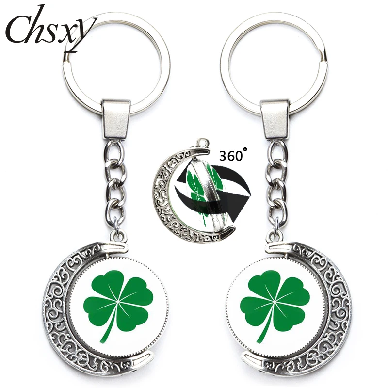 Брелок для ключей с изображением четырехлистного клевера, поворотный на 360 градусов