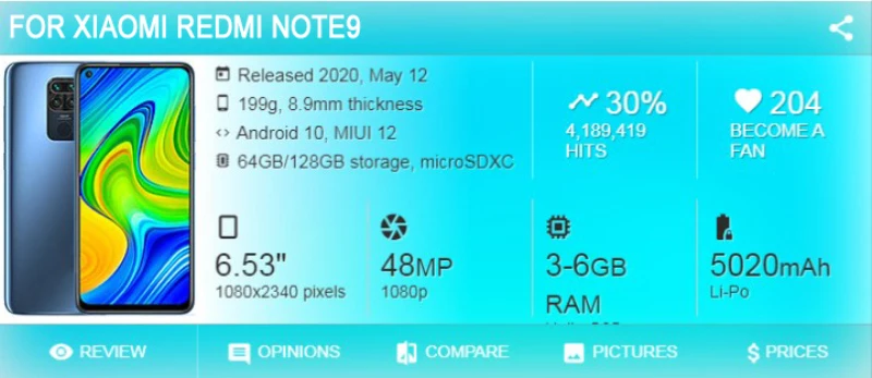 Номер моделиFor redmi 10x 4G Note 9
