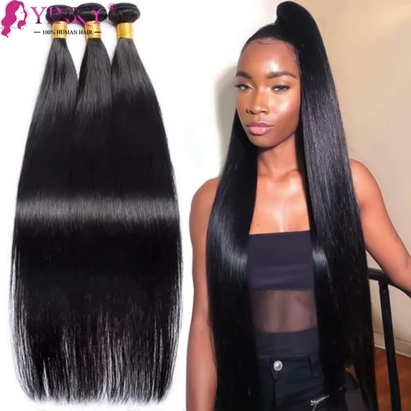 Бразильские прямые человеческие волосы, пучки 30 дюймов, 100% натуральный цвет, Remy, дешевые человеческие волосы, волнистые, можно купить 3 или 4 пучка