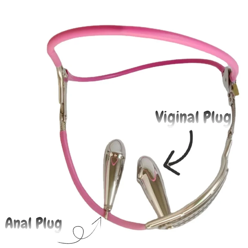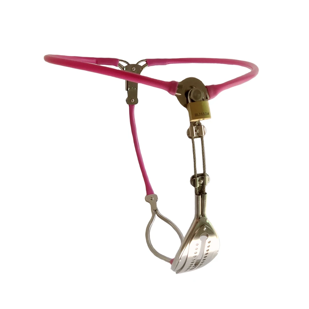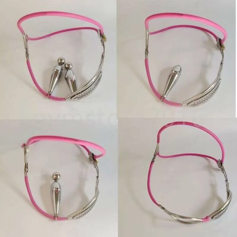 Женский пояс верности из нержавеющей стали и силикона, розовое, чер...