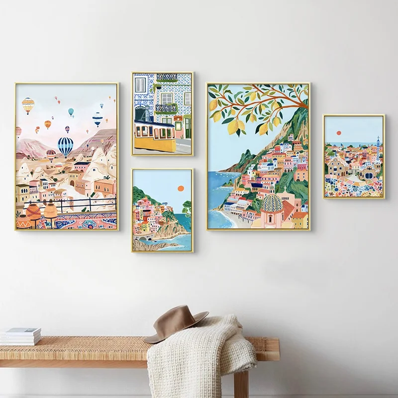 Настенная живопись на холсте в стиле ретро, путешествия, знаменитые города, Испания, Турция, Италия, Португалия, пейзаж, постер, гостиная, украшение для дома