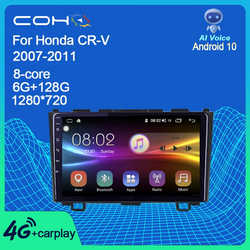 COHO для Honda CRV 2007-2011 Android 10,0 Восьмиядерный 8 ГБ + 256 ГБ QLED 1280*720 DSP RDS автомобильный радиоприемник GPS карта мультимедийный видеоплеер