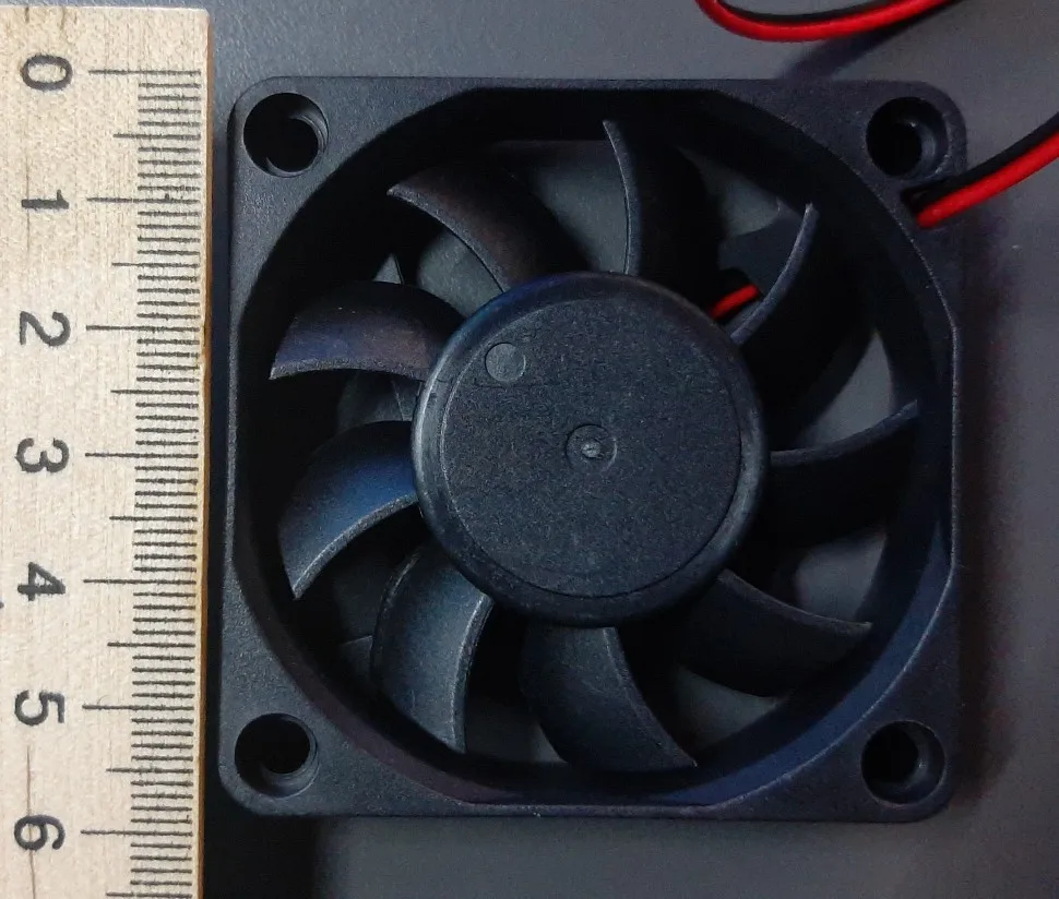 60 мм x 60 мм x 15 мм, 12 В Потребляемый ток составляет 9,5 мА, уровень шума средний. Не тихо. Воздушный поток выше среднего.