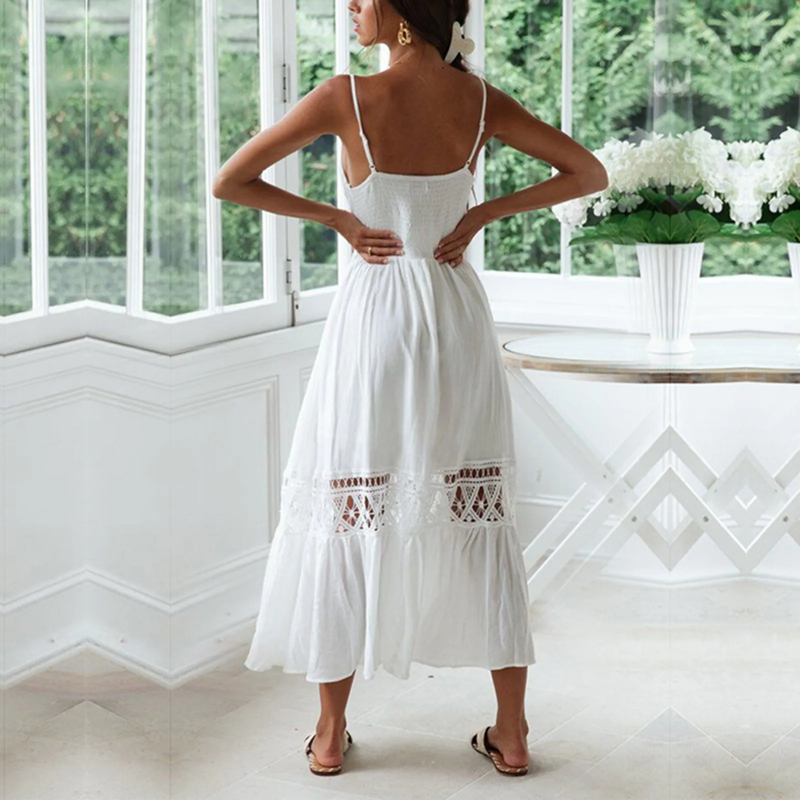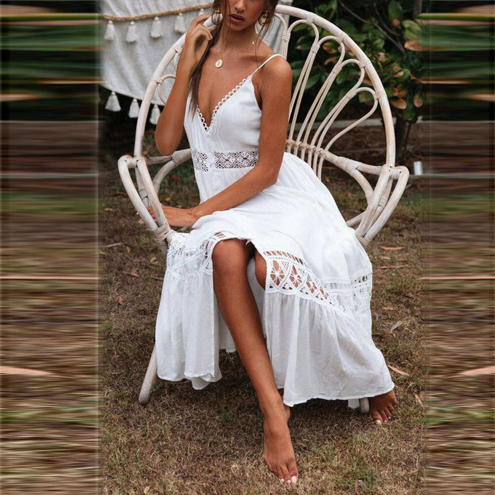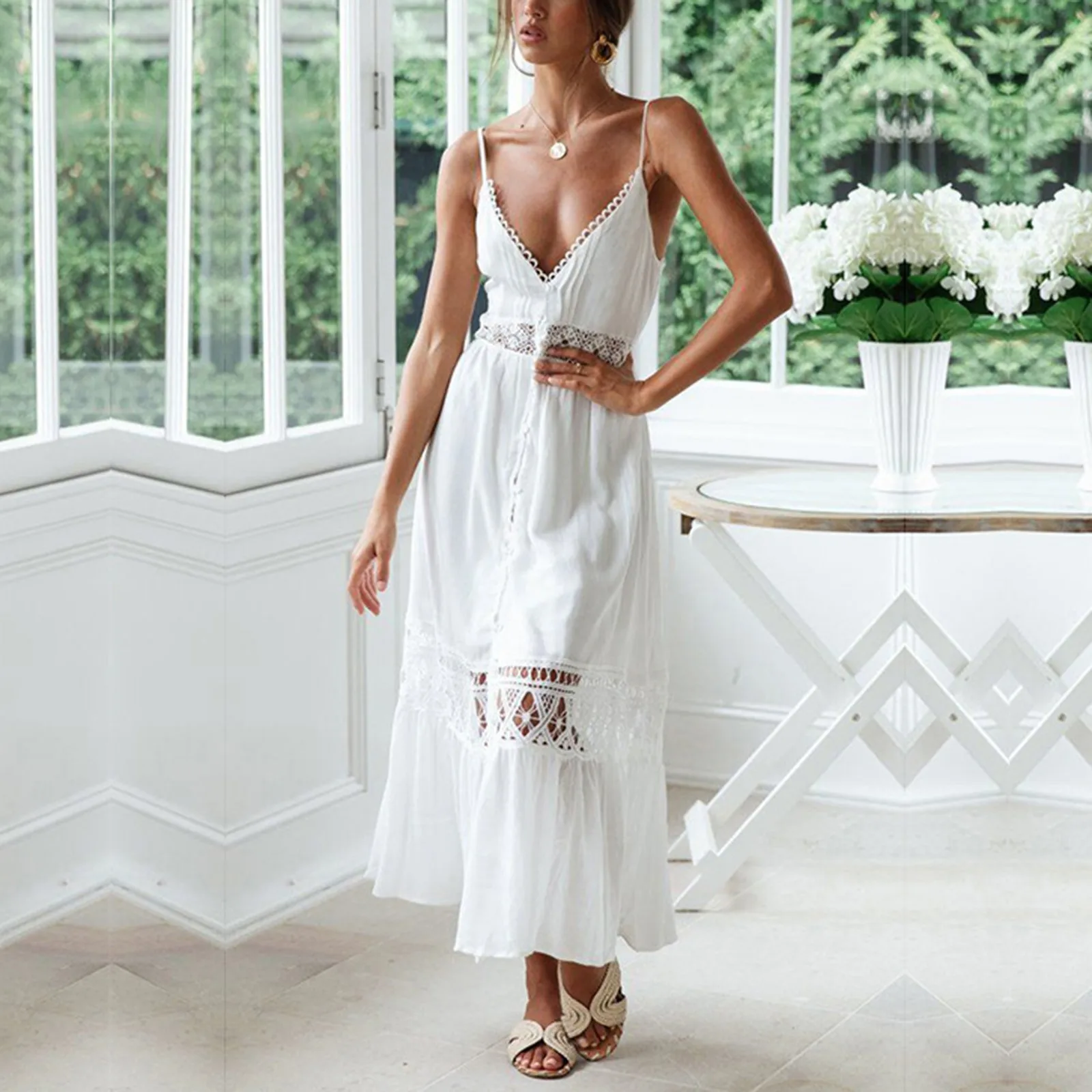 Женское повседневное элегантное кружевное платье с v-образным вырезом, вечерние платья на бретелях