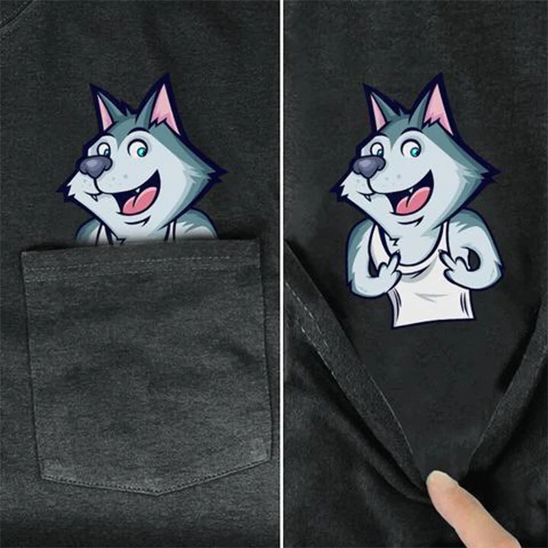 Симпатичная летняя футболка CLOOCL с карманами, забавная Футболка с принтом выдры, мужские и женские Рубашки, Топы, Мультяшные хлопковые черные футболки