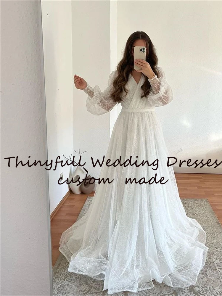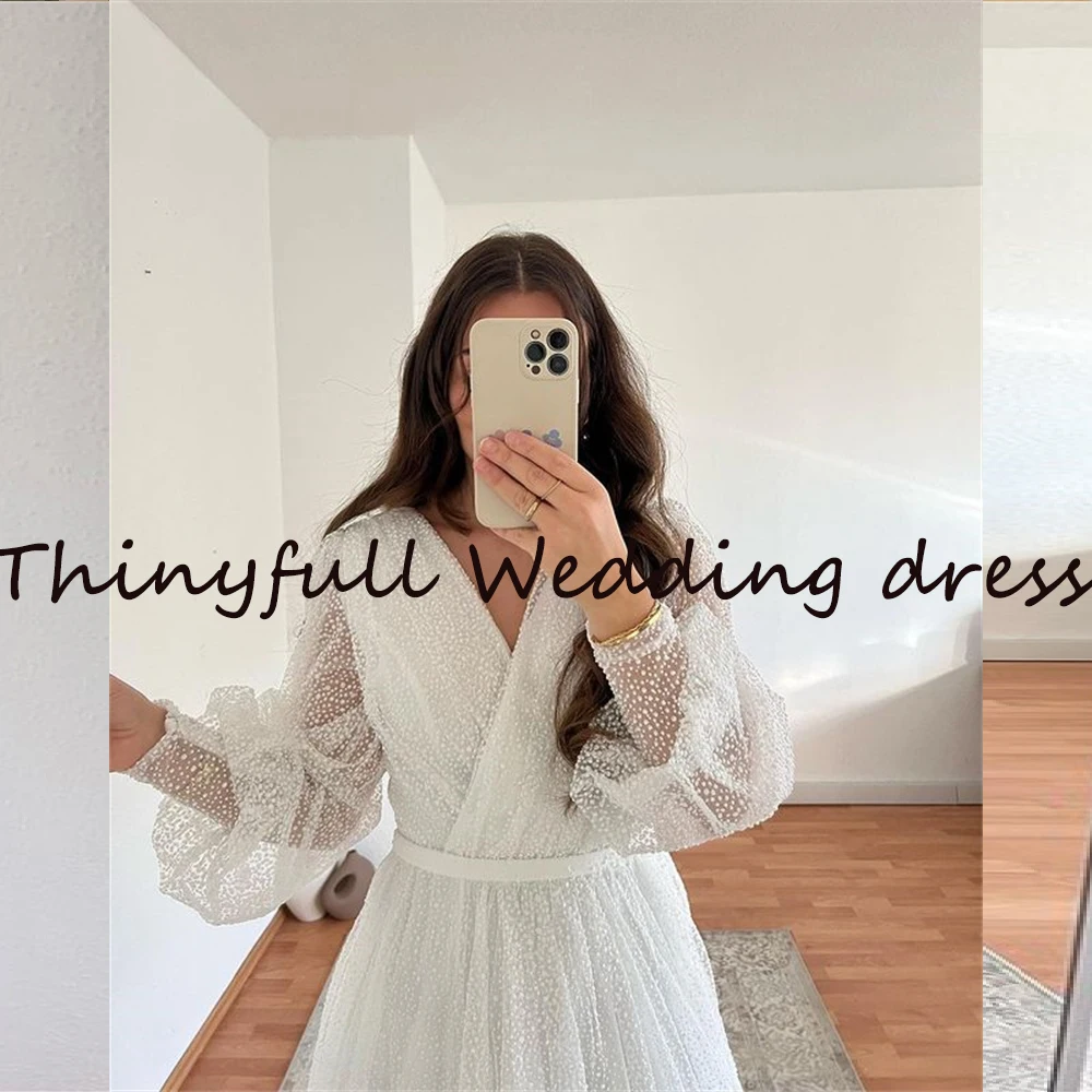 Thinyfulll модные блестящие свадебные платья а-силуэта с длинным ру...