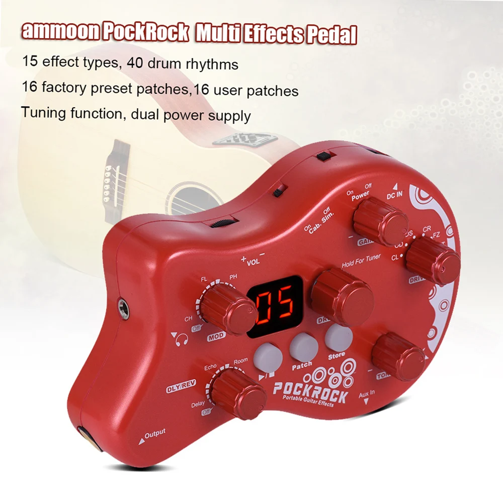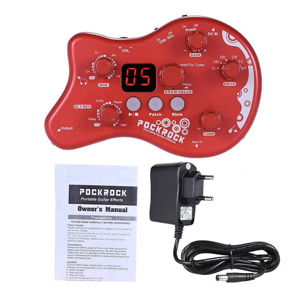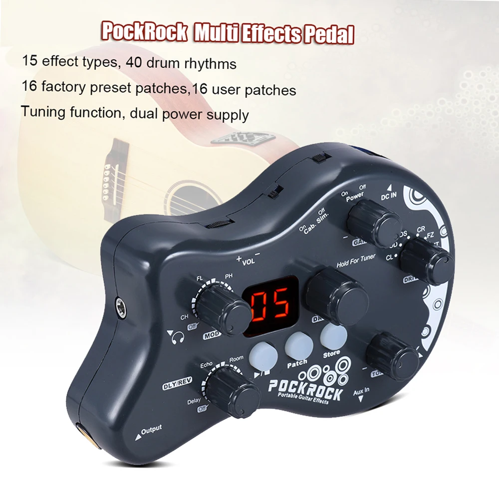 PockRock портативный гитарный Многофункциональный процессор педаль эффектов 15 типов эффектов 40 барабанных ритмов Функция настройки с адаптером питания