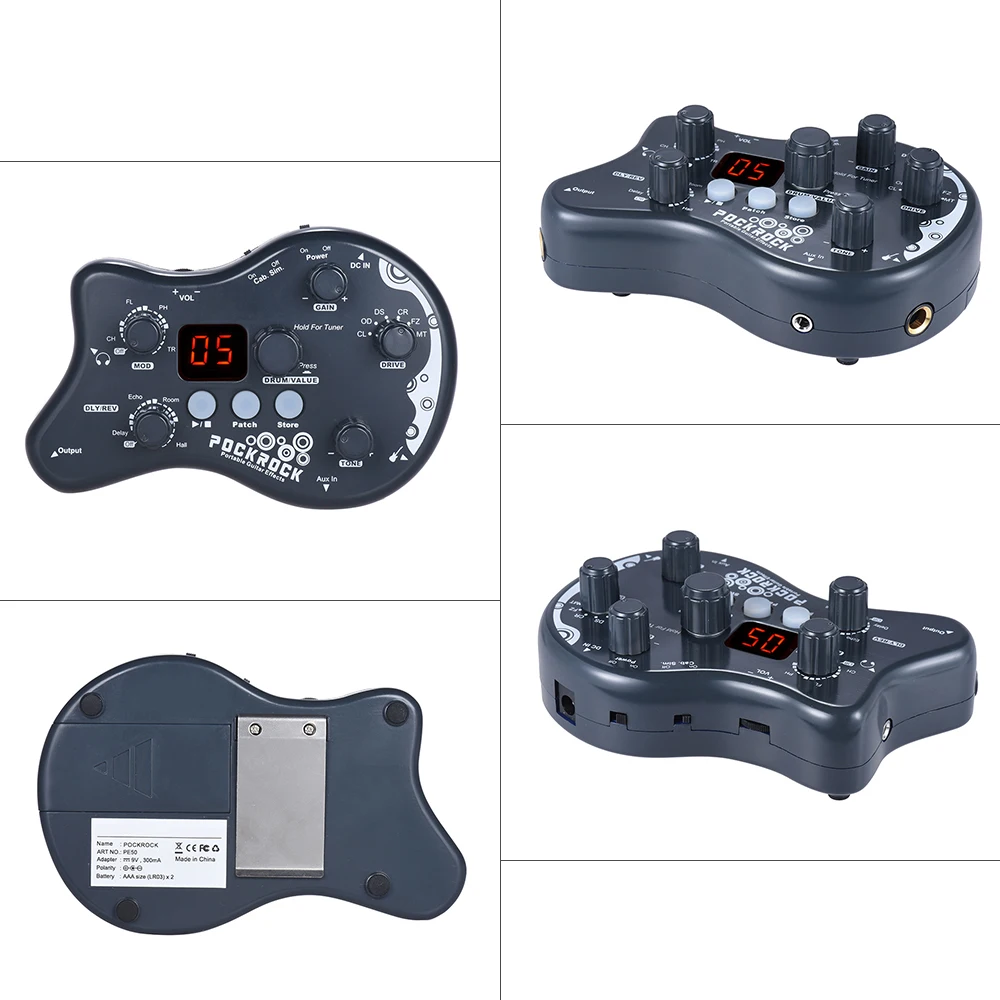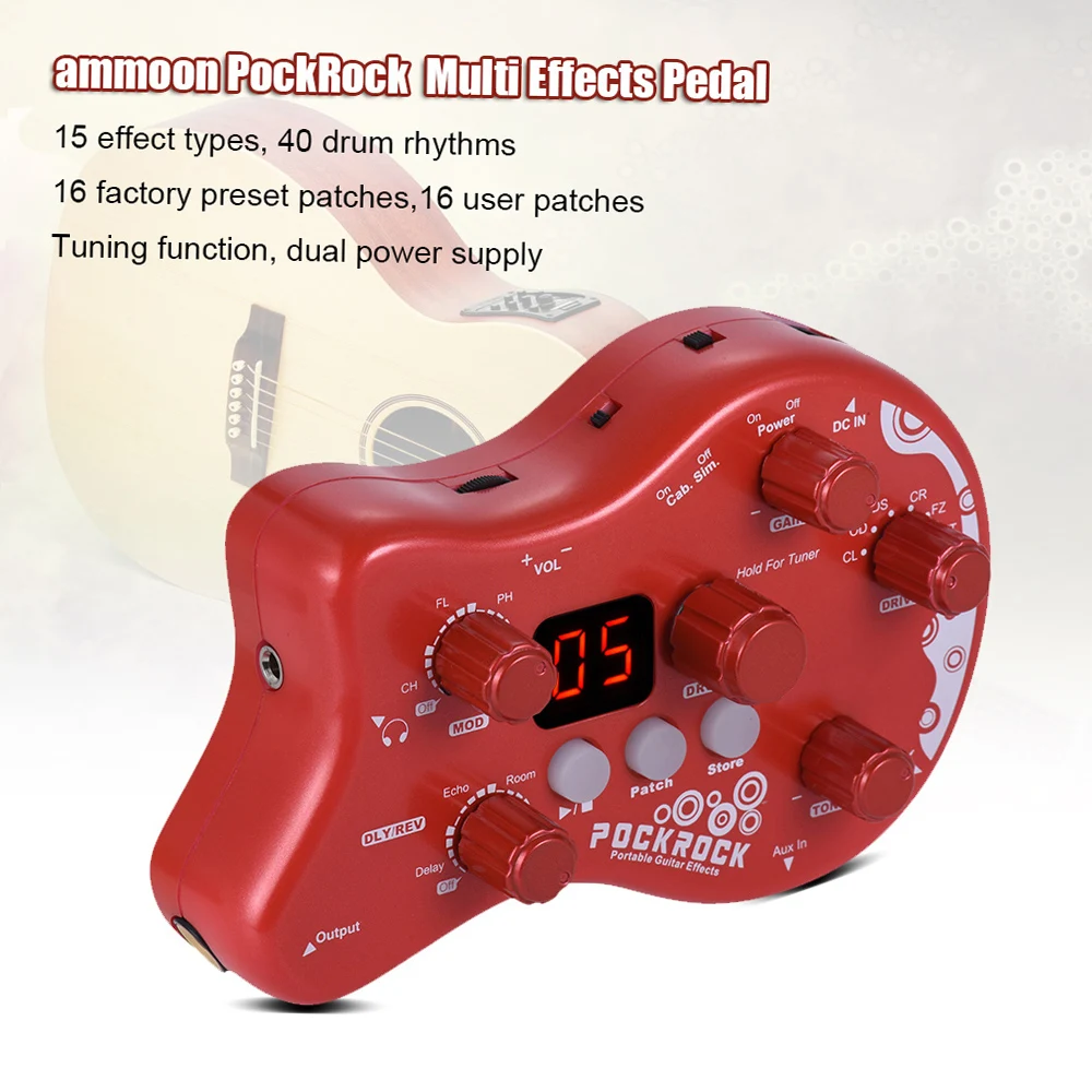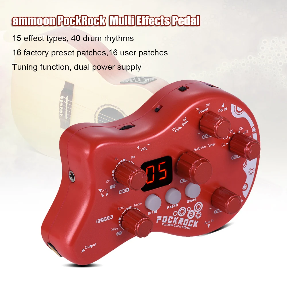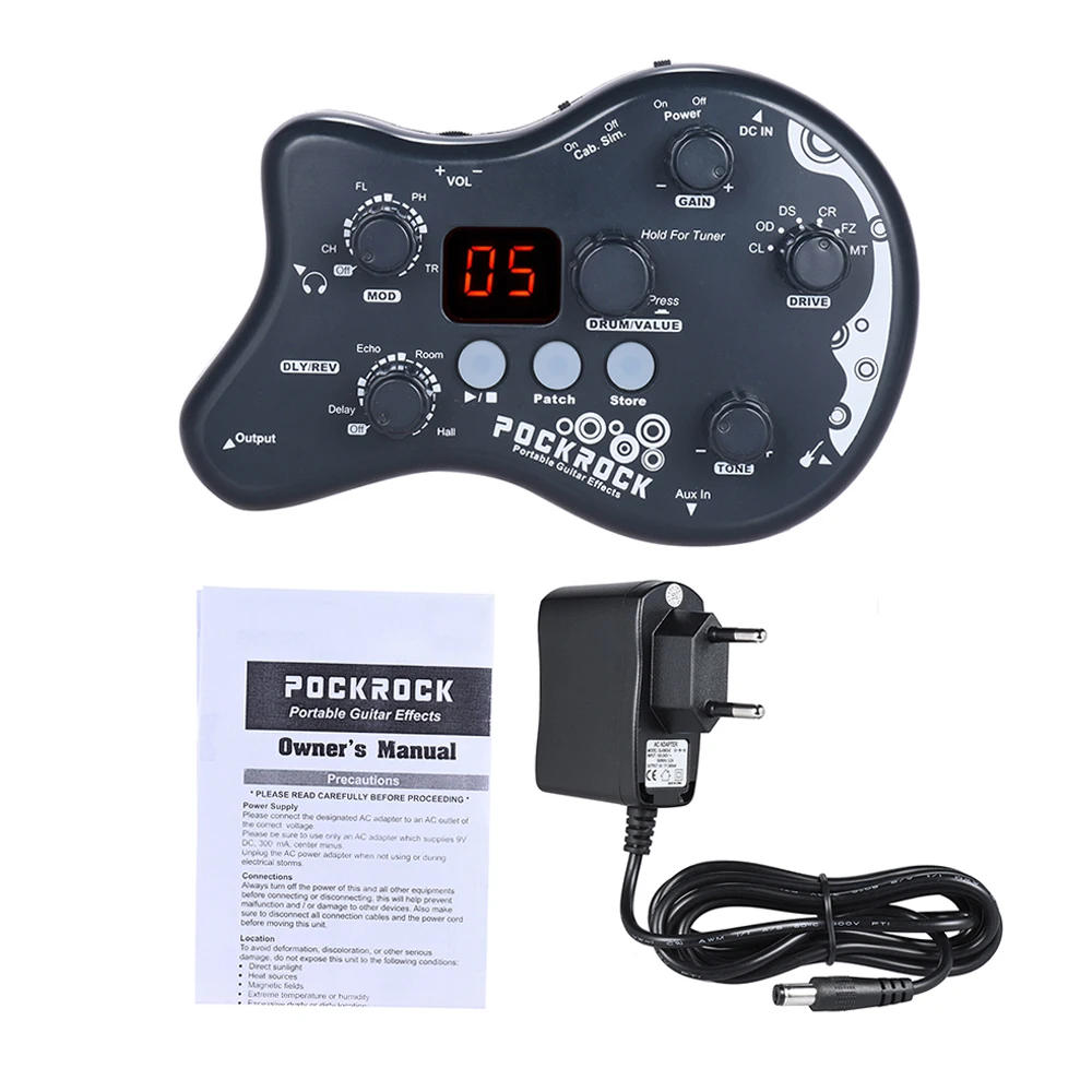 PockRock портативный гитарный Многофункциональный процессор педаль эффектов 15 типов эффектов 40 барабанных ритмов Функция настройки с адаптером питания