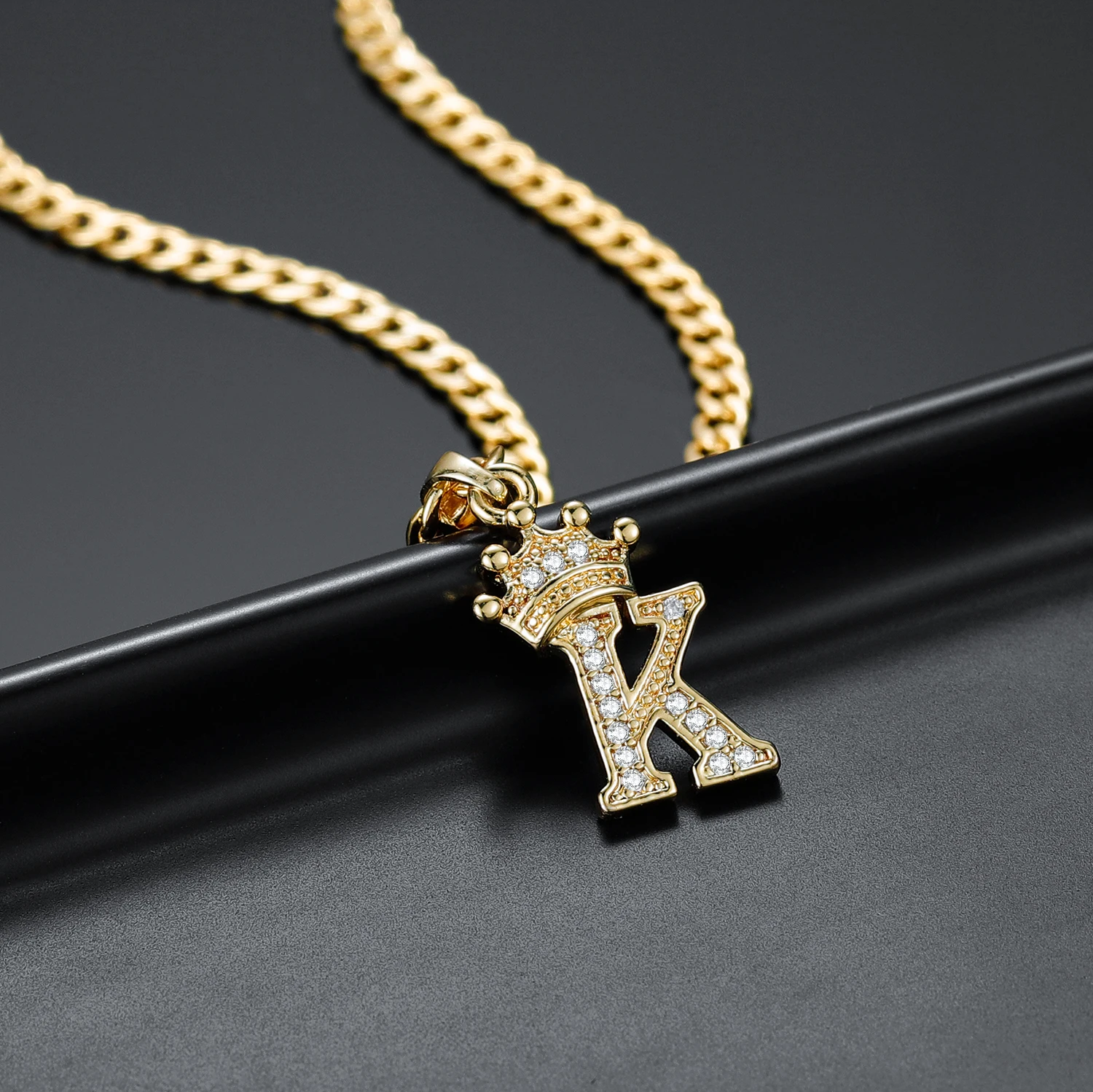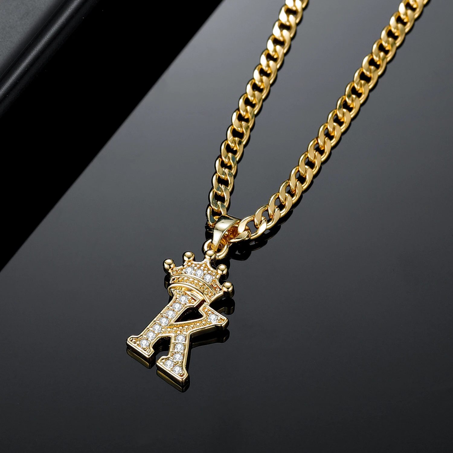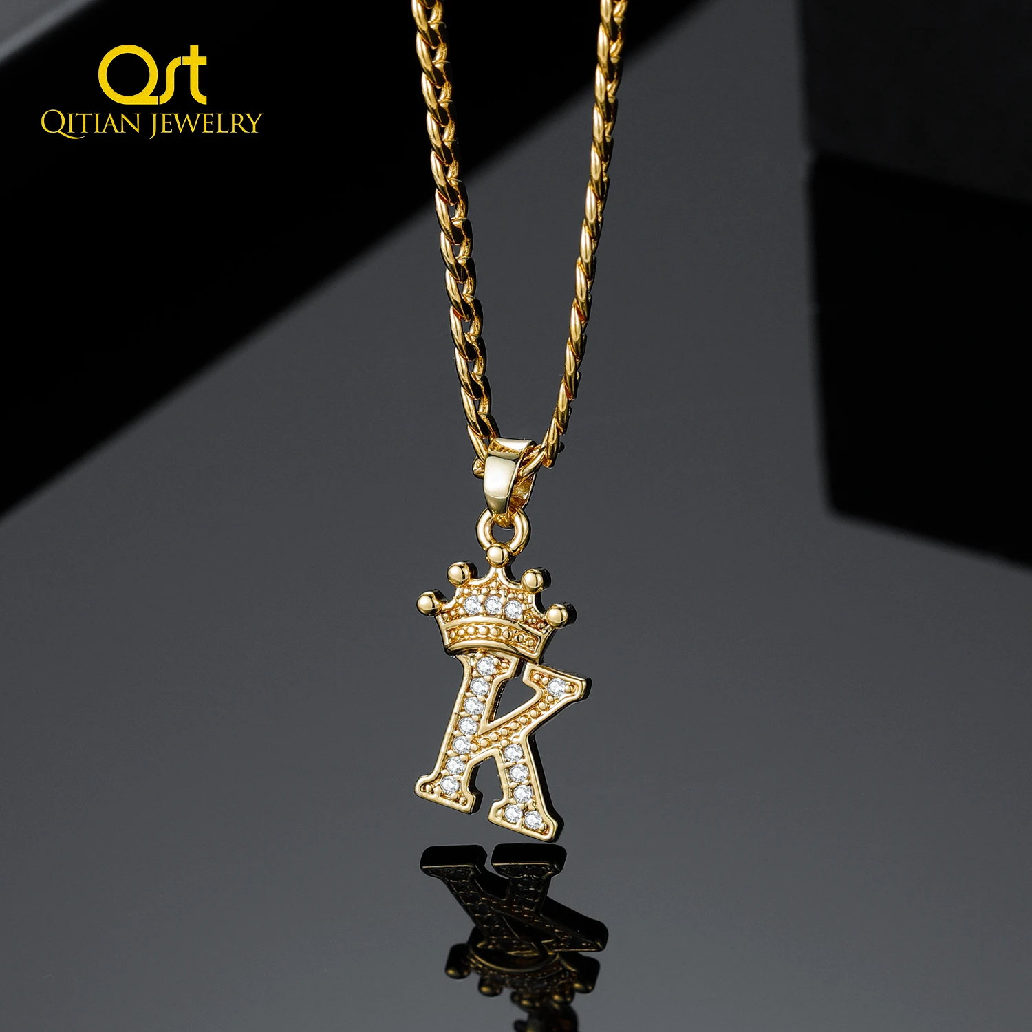 Ожерелье с подвеской в виде алфавита с кристаллами циркона для женщин Золотая Корона ожерелье с буквами инициала хип-хоп искусственное колье бижутерия