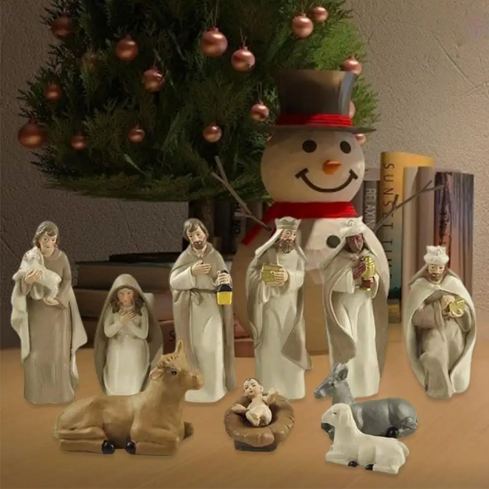 Набор рождественских фигурок с рождественским орнаментом на тему Рождества, статуэтка с Иисусом из смолы, красивые подарки для дома, Декор
