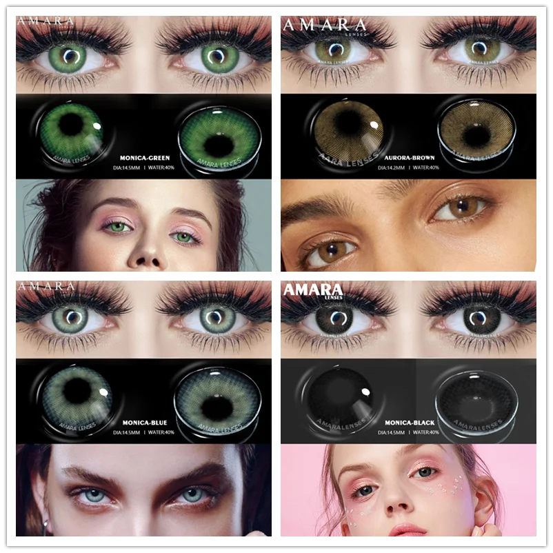 AMARA, цветные контактные линзы для глаз, одноцветные линзы Моники ed, синие и зеленые линзы на Хэллоуин, контактные линзы, красивый макияж, зрачок