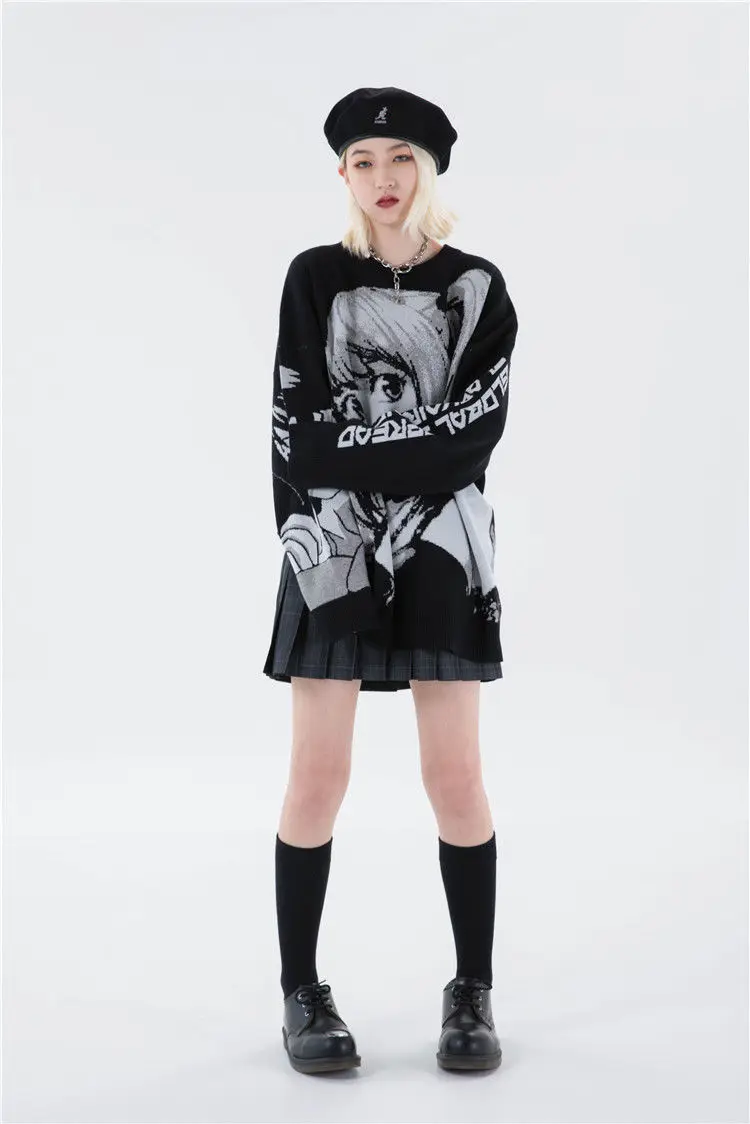 Женский Трикотажный Свитер оверсайз с длинным рукавом, в стиле Харадзюку