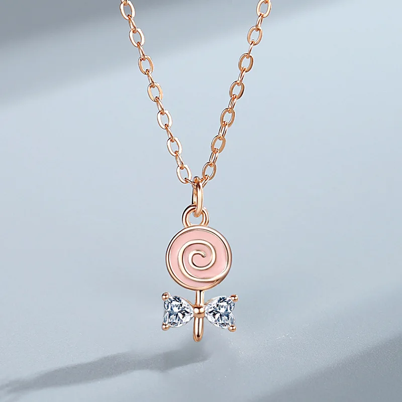 Женское ожерелье из розового золота в форме леденца с чистым камнем, свадебная цепочка в форме сердца с цирконом класса ААА, подвеска-крест, ювелирные изделия