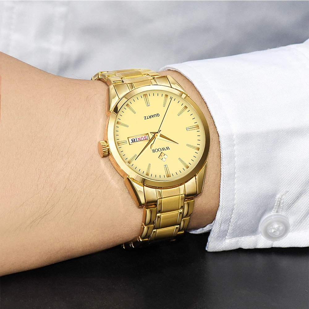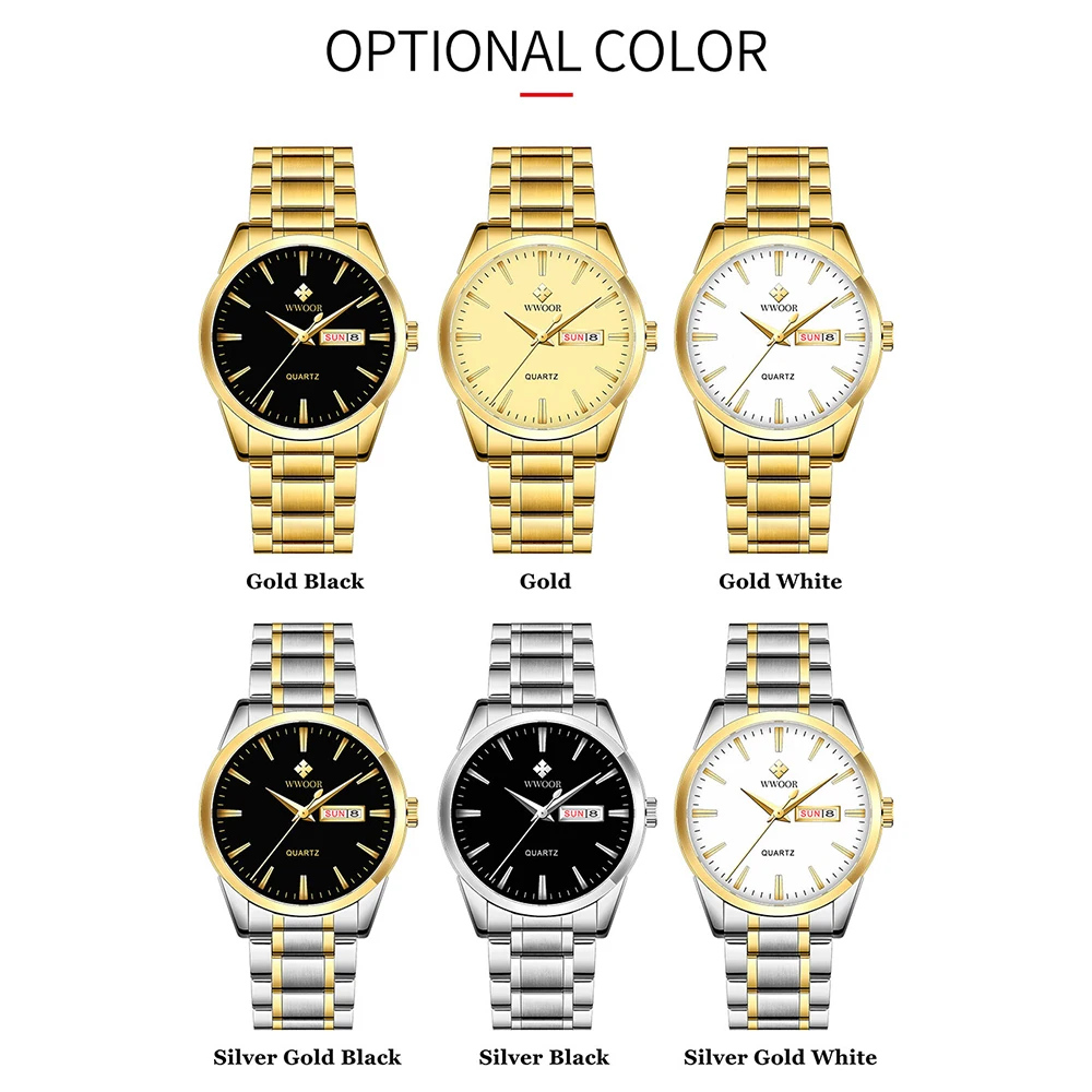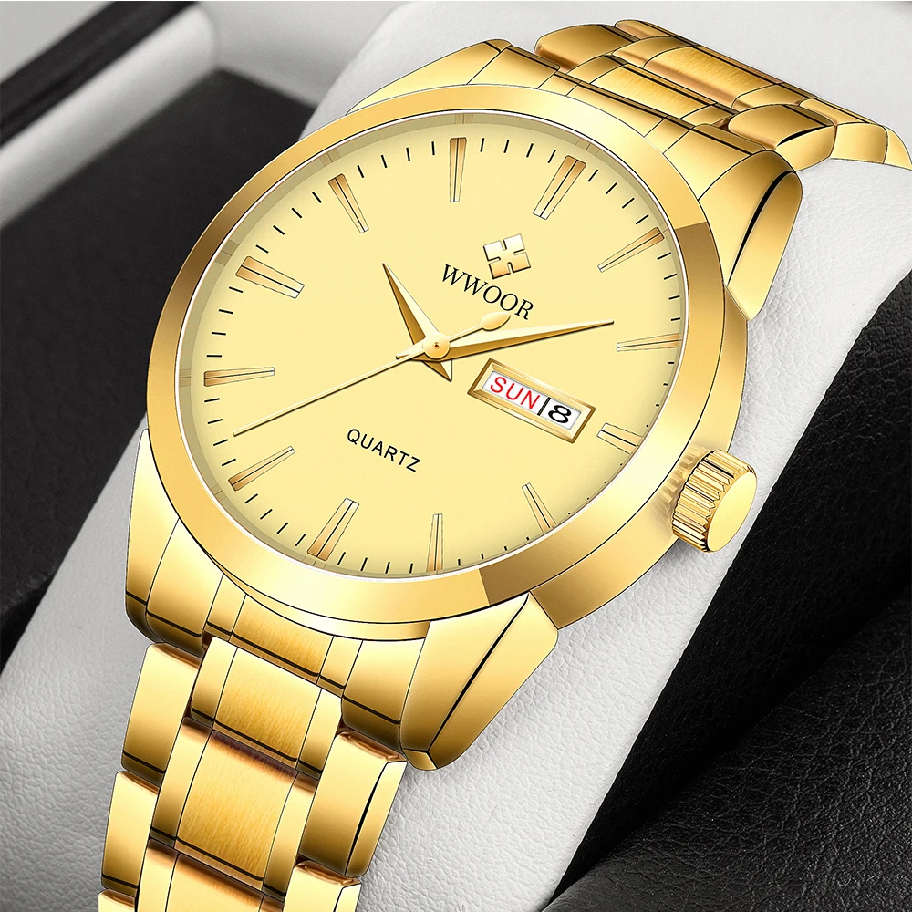 Мужские часы WWOOR 2022, Классические деловые часы, водонепроницаемые кварцевые наручные часы, повседневные часы с отображением даты, календарем, мужские часы