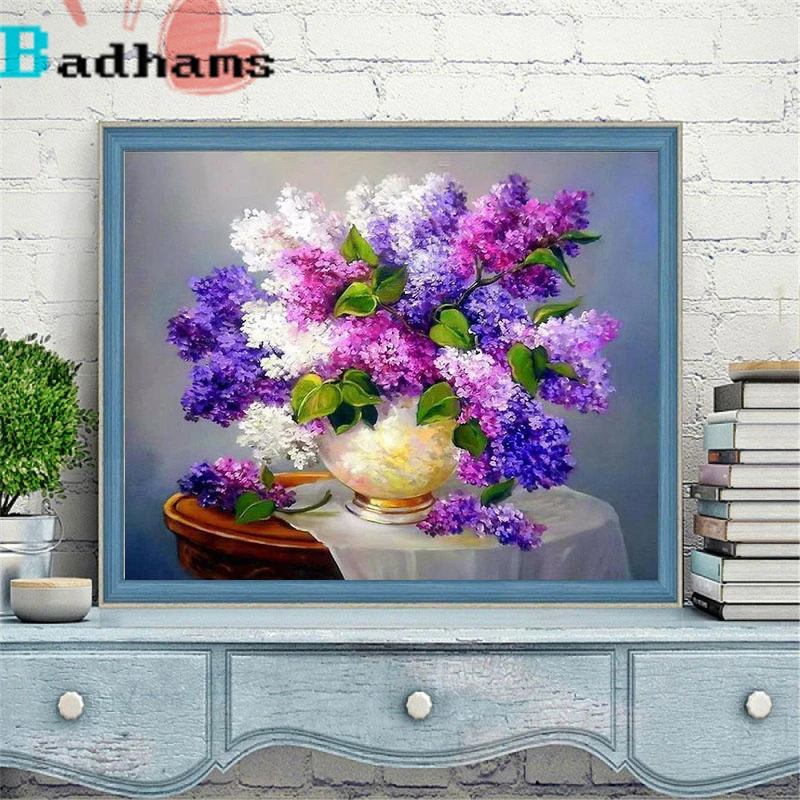 Алмазная живопись, розовая, белая, Лаванда в вазе 5D, сделай сам, вышивка крестиком стразы, полностью паста, мозаика для гостиной, спальни, домашний декор