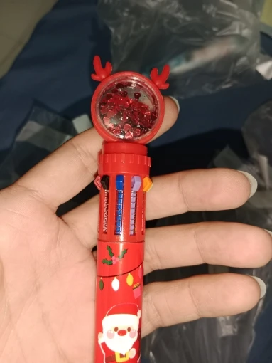 На самом деле, ручка имеет небольшие сложности со сменой цветов, стержни коротковаты, некоторые из них пишут не так, как мне бы хотелось, но это все вполне терпимо. На ней отличный принт, пластмасса крепкая, блестяшки блестят и очень приятно шуршат, если трясти. Для своих 80 рублей просто потрясающе на мой взгляд. (Доброта, позитив, новогоднее настроение (。•̀ᴗ-)✧