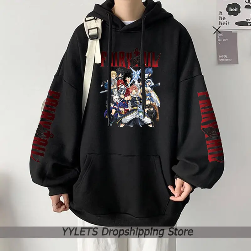 Толстовка с капюшоном Fairy Tail в стиле унисекс, худи с японским аниме принтом, уличная одежда в стиле Харадзюку, пуловер в стиле оверсайз, топы, теплая флисовая толстовка