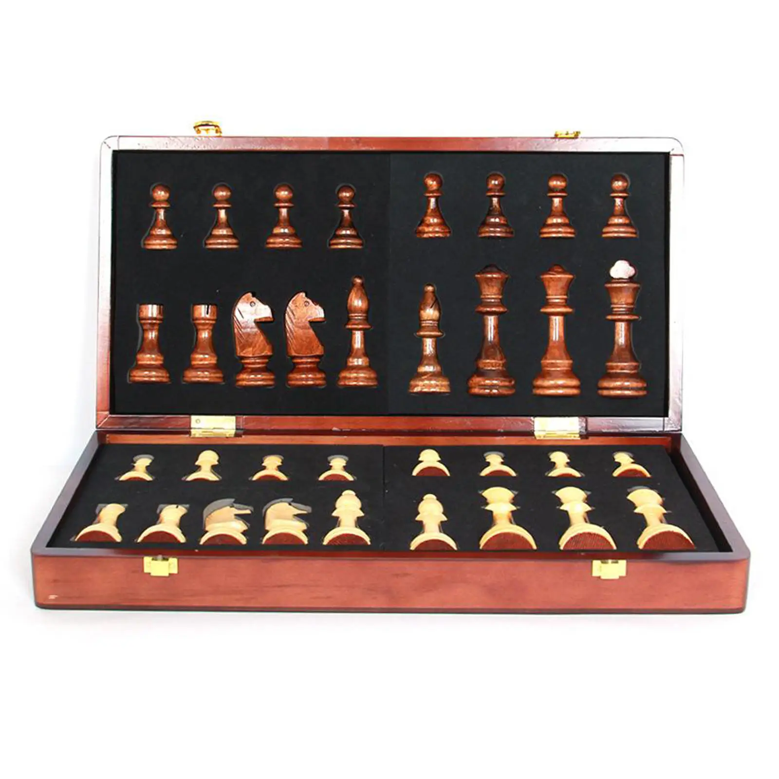 Материал: палисандр, грецкий орехШахматная доска Размеры: 45x45x3.8 см/17,7x17,7x1,5 дюймов (раскладывается); 45x22.5x7.6 см/17,7x8,86x3 дюйма (в сложенном виде)Высота шахматных частей: король (105 мм), Королева (100 мм), Бишоп (85 мм), рыцарь (75 мм), ВОК (61 мм), пешка (50 мм)Дно шахматных частей: король (40 мм), Королева (40 мм), Бишоп (35 мм), рыцарь (34 мм), ладья (33 мм), пешка (30 мм)