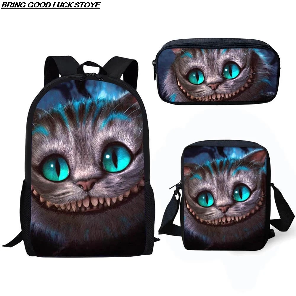 Классические детские рюкзаки с 3D рисунком Чеширского Кота И улыбкой, школьные ранцы для мальчиков и девочек, забавные школьные сумки для учеников из 3 предметов
