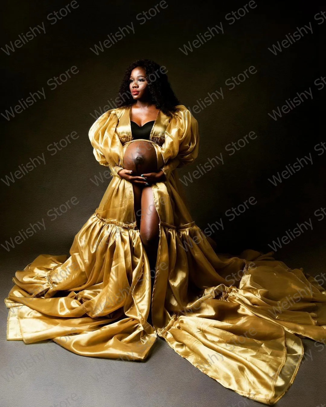 Высококачественный Мягкий Шифоновый длинный золотой халат для беременных женщин большого размера пышные рукава фатиновые платья для беременных для фотосессии