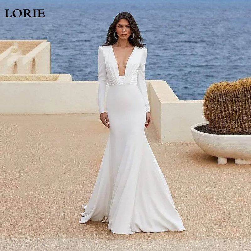 LORIE Сексуальное Женское свадебное платье с V-образным вырезом и длинным рукавом
