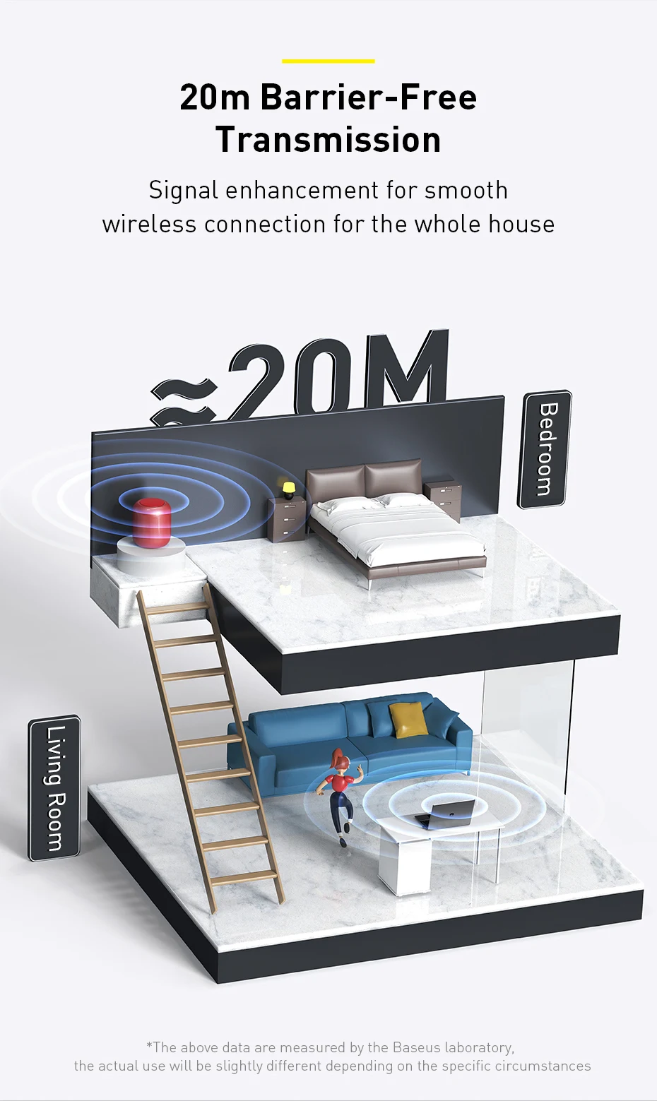 самый миниатюрный, конкурентам по дальности сигнала проиграет, ни о каких 20 метрах конечно речи не идёт. Связь стабильная в приделах комнаты. на вид симпатичный.