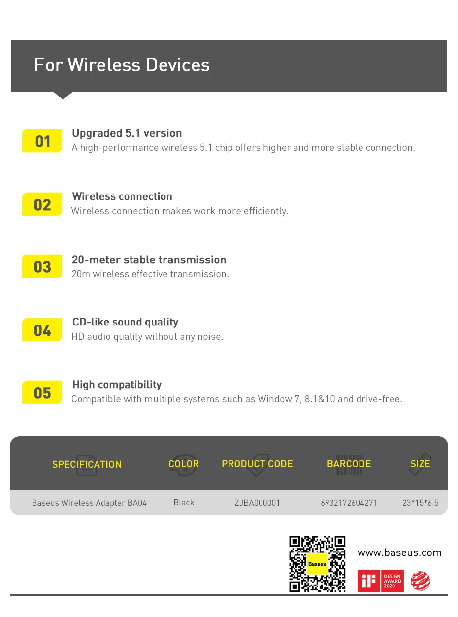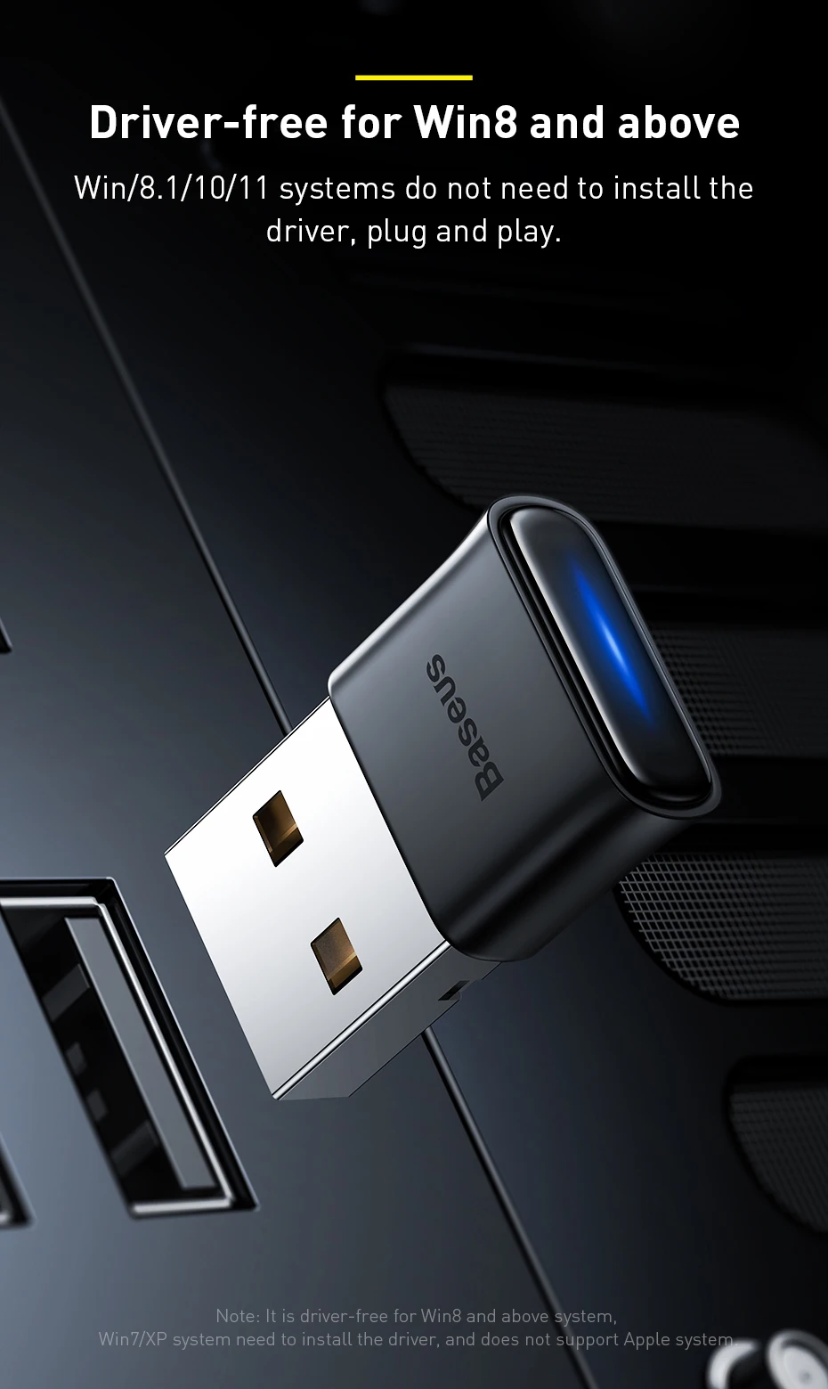 USB Bluetooth-адаптер Baseus, приемник Bluetooth 5,1 для ПК, беспроводная мышь, геймпад, динамик, внешний USB-передатчик