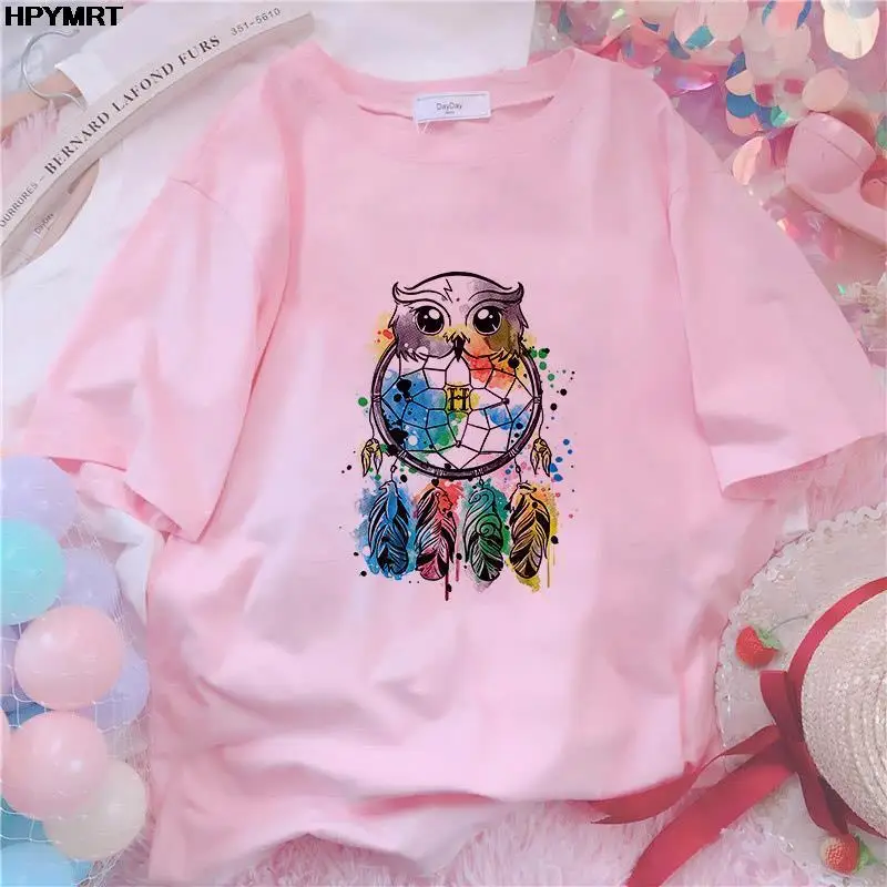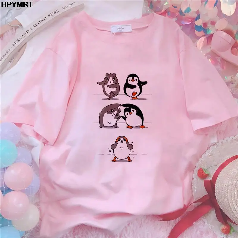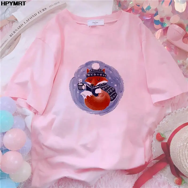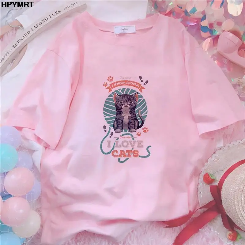 Футболка женская с принтом животных, Милая Тонкая рубашка в стиле Харадзюку, повседневный топ с коротким рукавом, цвет белыйрозовый, одежда на лето