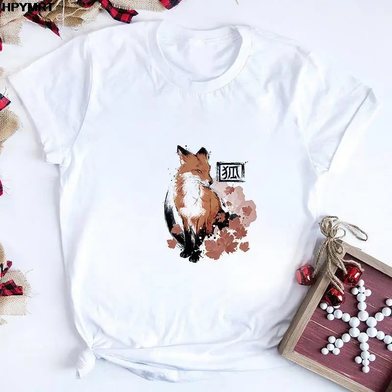 Футболка женская хипстерская, белая, с принтом лисы, в стиле Харадз...