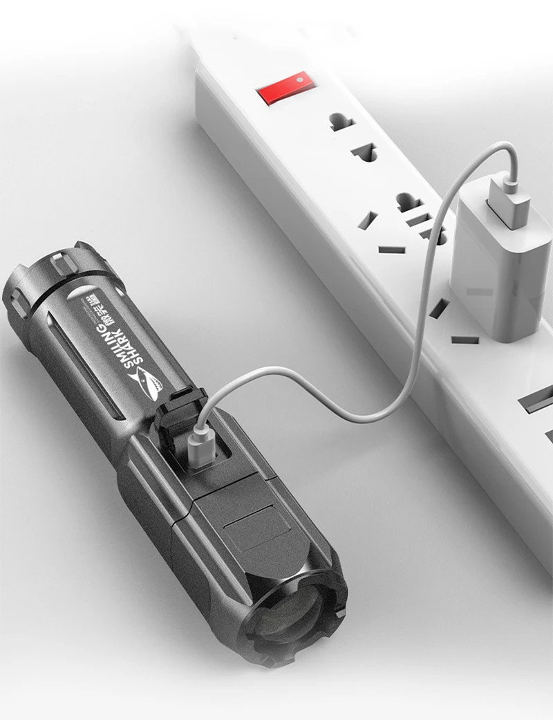 Высокомощная вссветильник с улыбающейся акулой, перезаряжаемый зум,...
