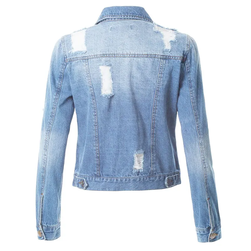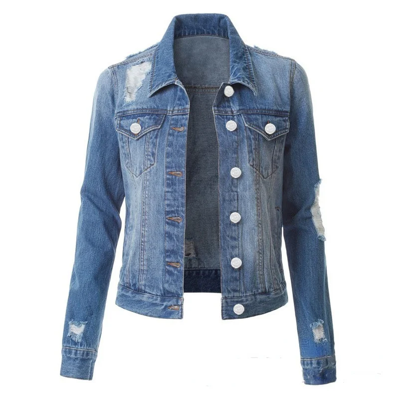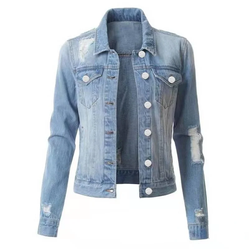 Женская джинсовая куртка с дырками, базовые куртки, Женская однотонная однобортная верхняя одежда, облегающие винтажные женские джинсовые пальто, осенняя женская одежда