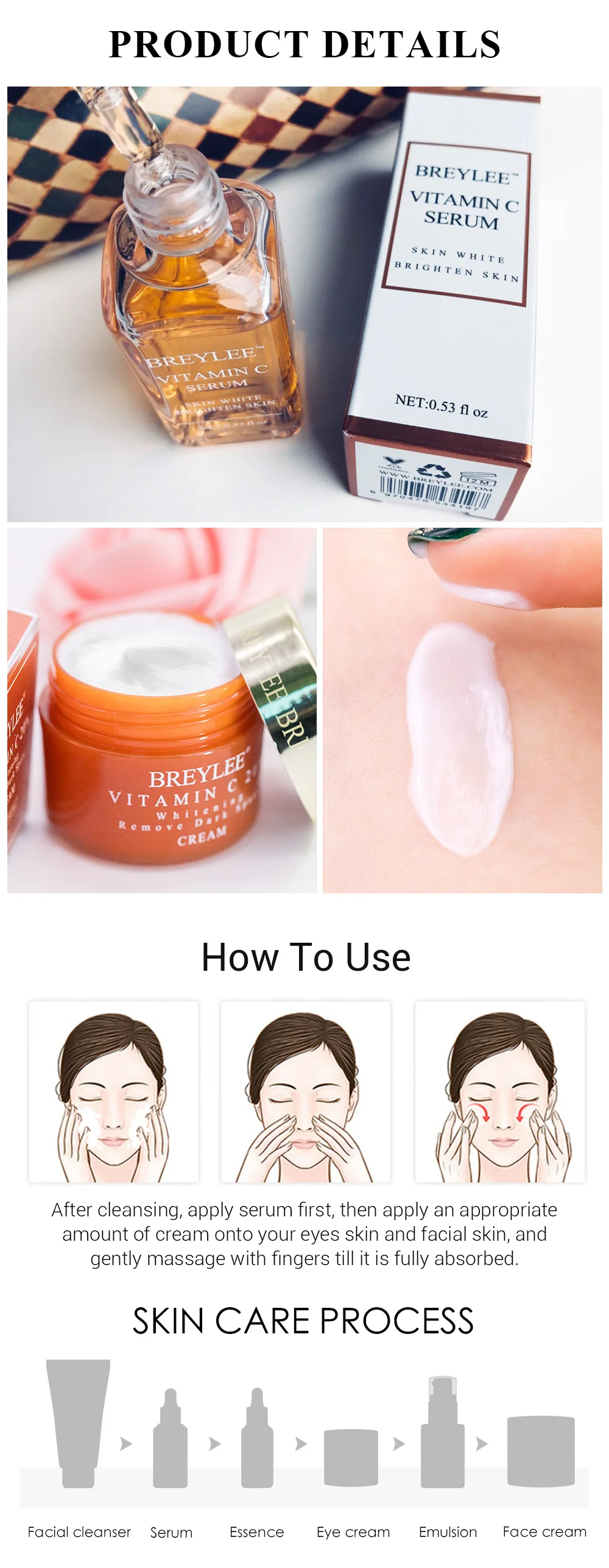 Отбеливающая сыворотка BREYLEE с витамином C для лица, увлажняющая уход за кожей, эссенция для удаления темных кругов и пятен, набор без возраста