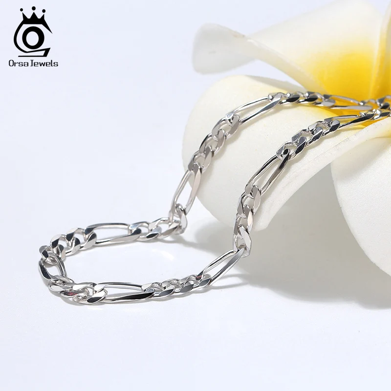 ORSA JEWELS, ручная работа, итальянское серебро 925 пробы, 5 мм, 7 мм, бриллиантовая огранка, Фигаро, цепочка, ожерелье для мужчин и женщин, цепочки, ювелирные изделия SC34