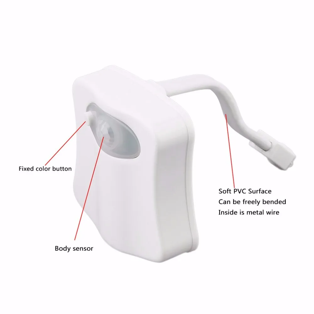1. Система автоматического зондирования: включается при закрытии, автоматически выключается при выходе2. Светильник 8 цветов: светильник 8 цветов в последовательности, каждый цвет выбирается случайным образом в течение 15 секунд, и весь круг составляет 120 секунд. Вы также можете решить желаемый цвет3. Энергосбережение и практичность: самочувствующее устройство облегчает вход и выход в ванную комнату, умное и заботливое4. Мягкую шею из ПВХ можно легко сложить для большего удобства5. Гигиеническая конструкция: легко моется6. Дизайн Модный и благородный, и украшение изысканное. Умное устройство идеально подходит для всех7. Подходит для всех ванных комнат: домов, гостиниц, ресторанов, кафе и т. д.