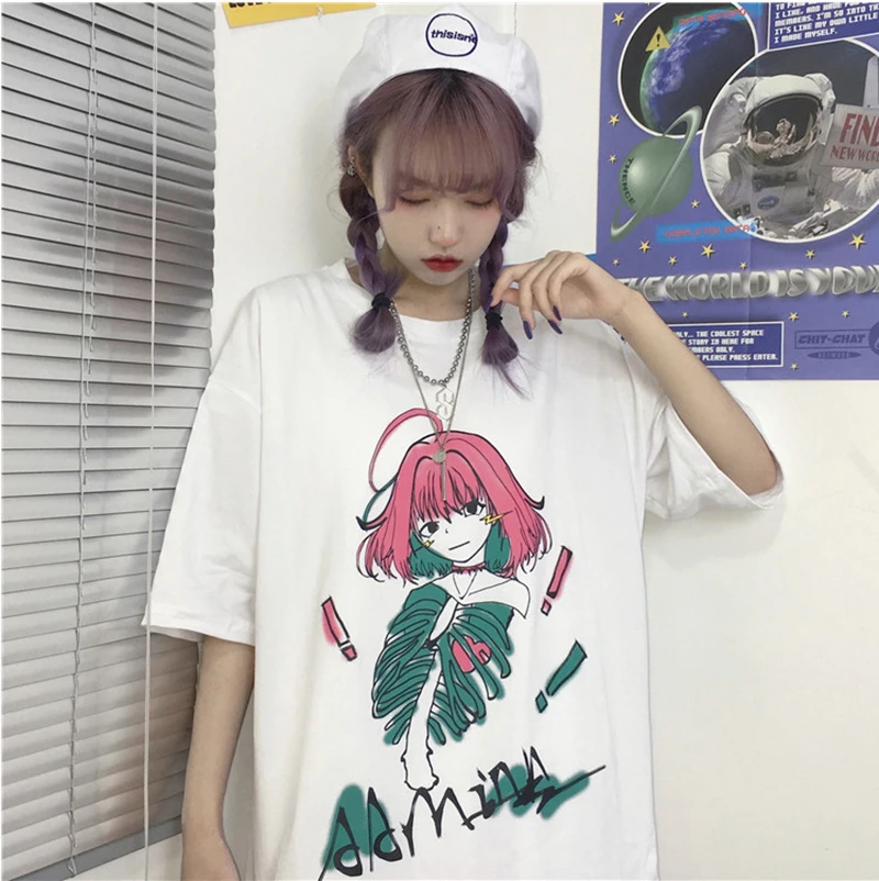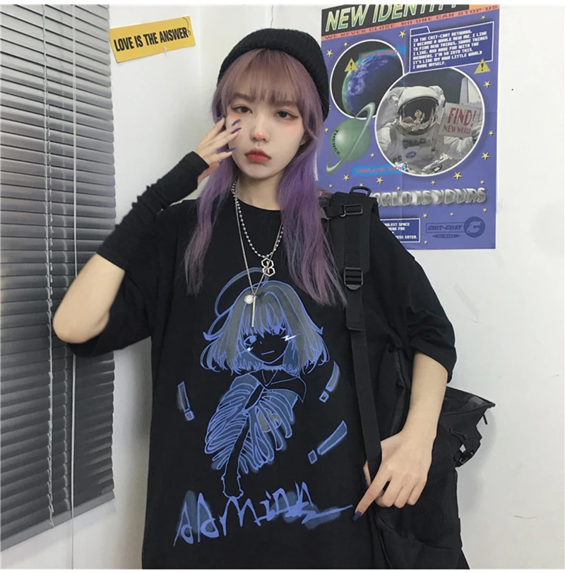 Футболка женская свободного покроя, Готическая уличная одежда в стиле Харадзюку, топ с принтом в стиле K-POP и аниме, модный Повседневный Ретро топ с коротким рукавом для мужчин и женщин, на лето