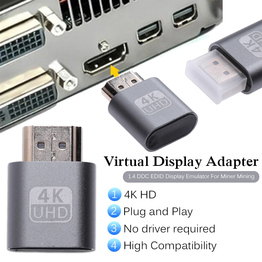4K HDMI-совместимый адаптер виртуального дисплея муляж 1,4 DDC EDID эмулятор отображения для майнинга BTC графическая карта блокировка пластины