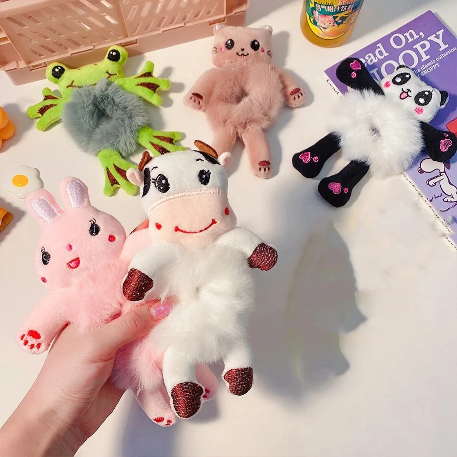Детская резинка для волос, эластичная резинка для волос, аксессуары для детской головы, мультяшная плюшевая лягушка, кролик, кошка, мягкая резинка для волос с животными