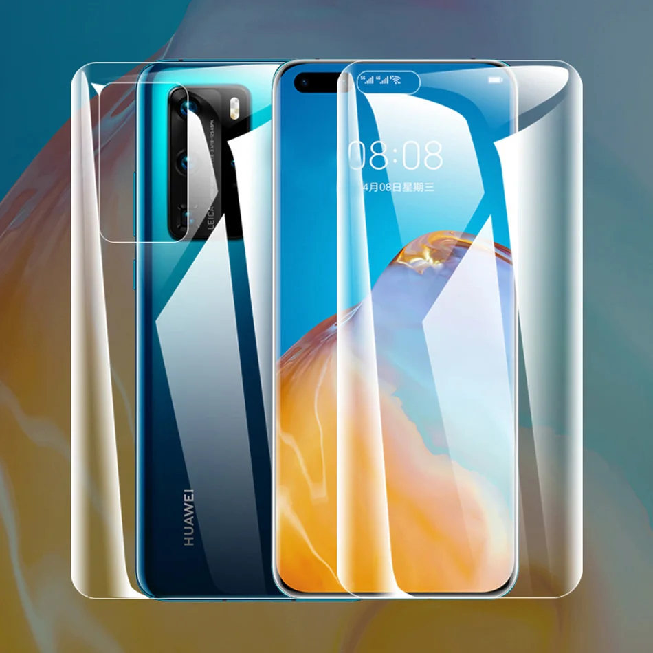 2 в 1 матовая Гидрогелевая пленка для HUAWEI P20 P30 P40 P50 Lite Pro Nova 9, Защитная пленка для задней панели Honor 9X 10i 20 Lite 50 Pro