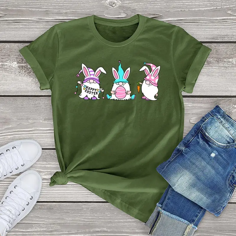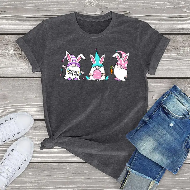 Пасхальный кролик Gnome счастливый Пасхальный Пун весна лето Декор футболка для женщин и мужчин Пасхальная семейная одежда Большие футболки Графический Тройник