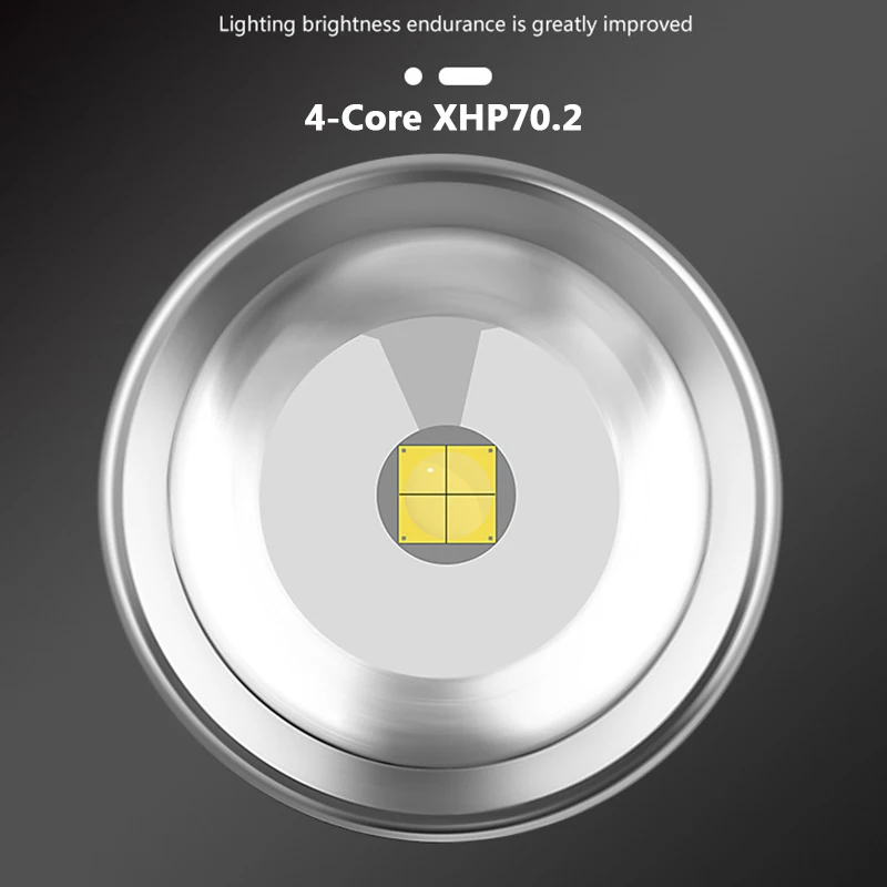 Фонарик XHP70.2 4-ядерный со встроенным аккумулятором 4*18650 и зар...