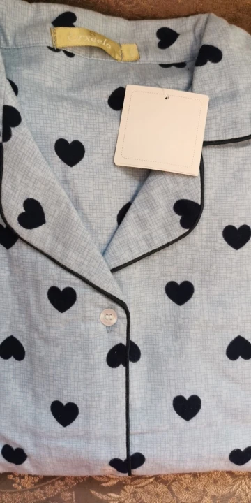 Приятный цвет, пижама мягкая и приятная к телу. Не имеет запаха и отличного качества. Размер L удобен для 158 см (длина хорошая), в основном S. Доставка была быстрой в течение 3 недель до Киева.