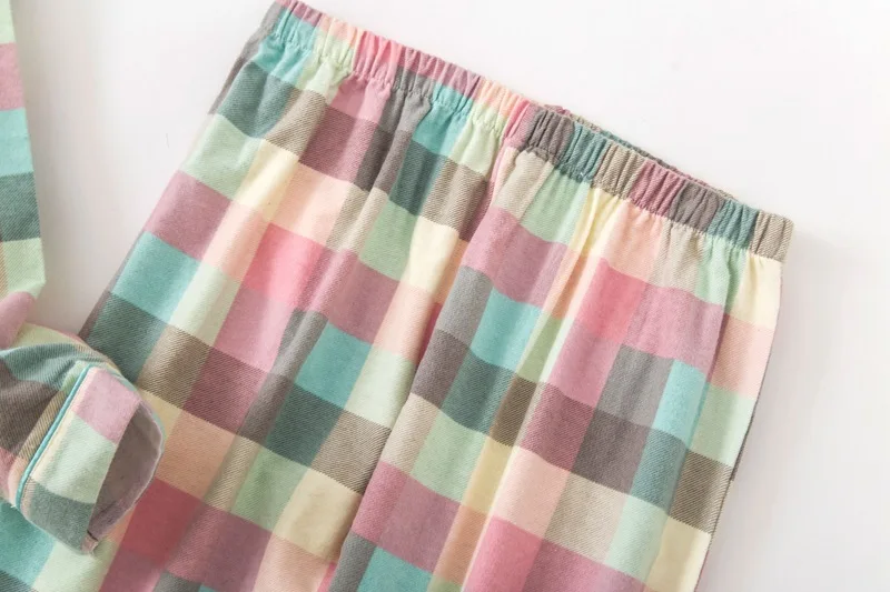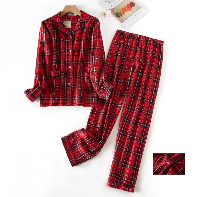 Женская одежда для сна, Женский пижамный комплект, женская теплая фланелевая хлопковая Домашняя одежда, костюм, осенне-зимняя пижама в клетку с принтом для сна
