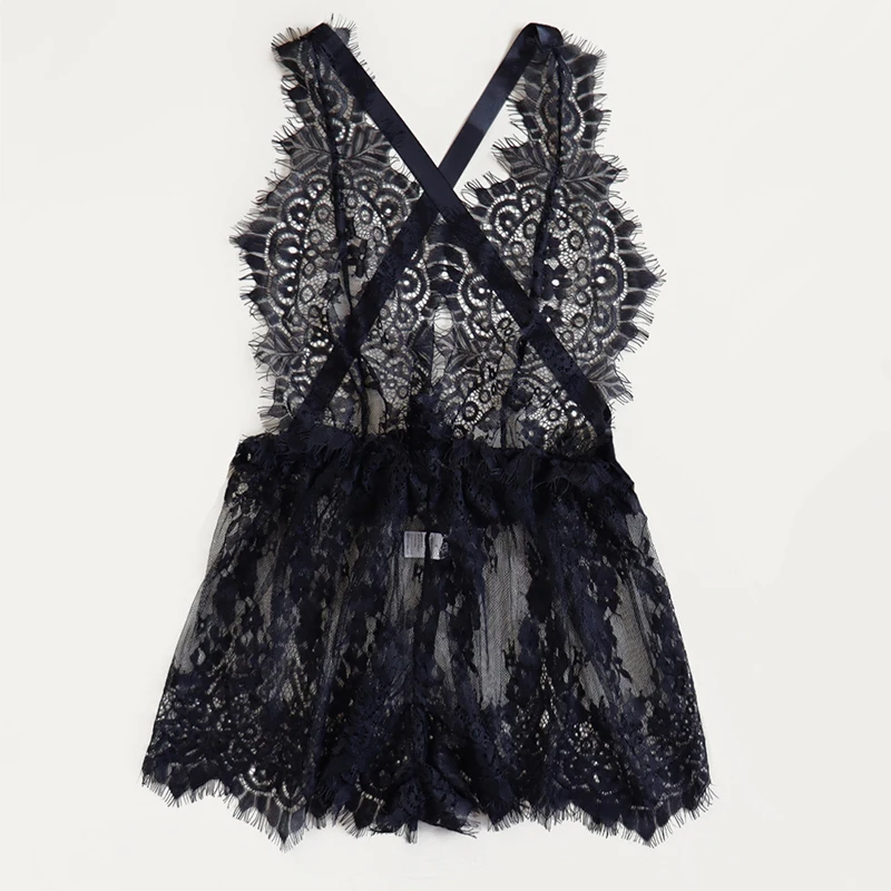Кружевное нижнее белье на бретелях с глубоким V-образным вырезом, Женский комплект с открытым бюстгальтером, сексуальные боди без рукавов с открытой спиной, прозрачный комбинезон, Сетчатое нижнее белье с цветочным принтом