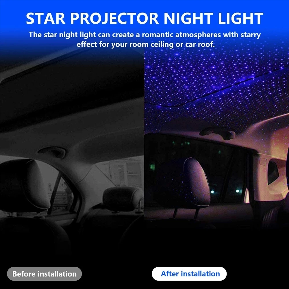 USB автомобильная звезда на крышу, светодиодный внутренний светильник, Звездный лазер, атмосферный проектор, автомобильное украшение, спальня, вечеринка, декор для потолка