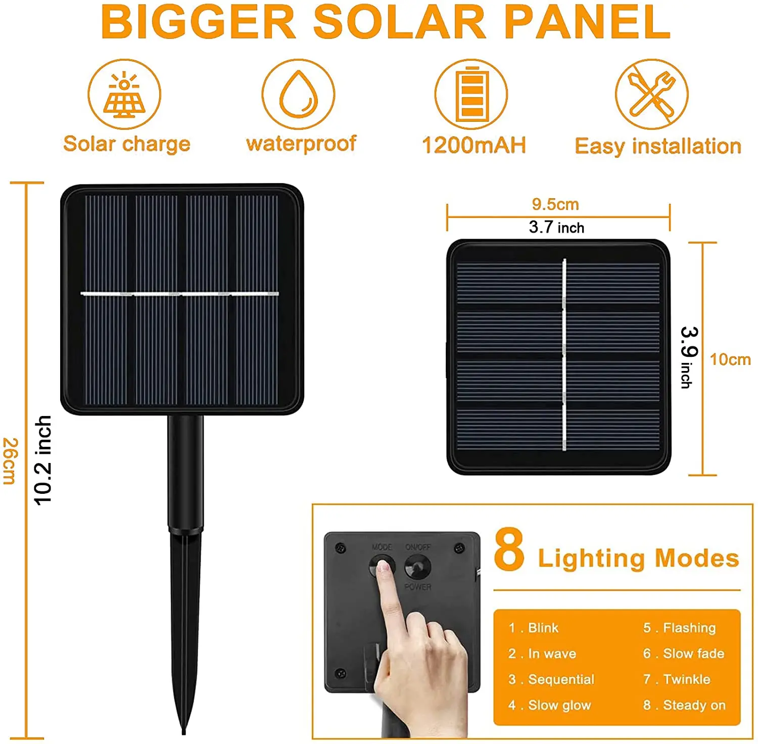 ✨Автоматический переключатель: сказочные огни питаются от солнечной энергии, работает до 8 часов после 8-12 часов полной зарядки. Автоматически включается ночью и выключается в течение дня.